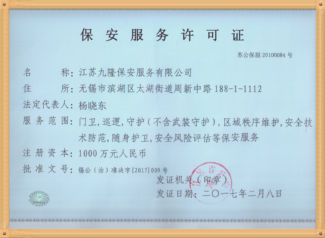 版权所有©2021 江苏九隆保安服务有限公司 苏ICP备09077785号-1