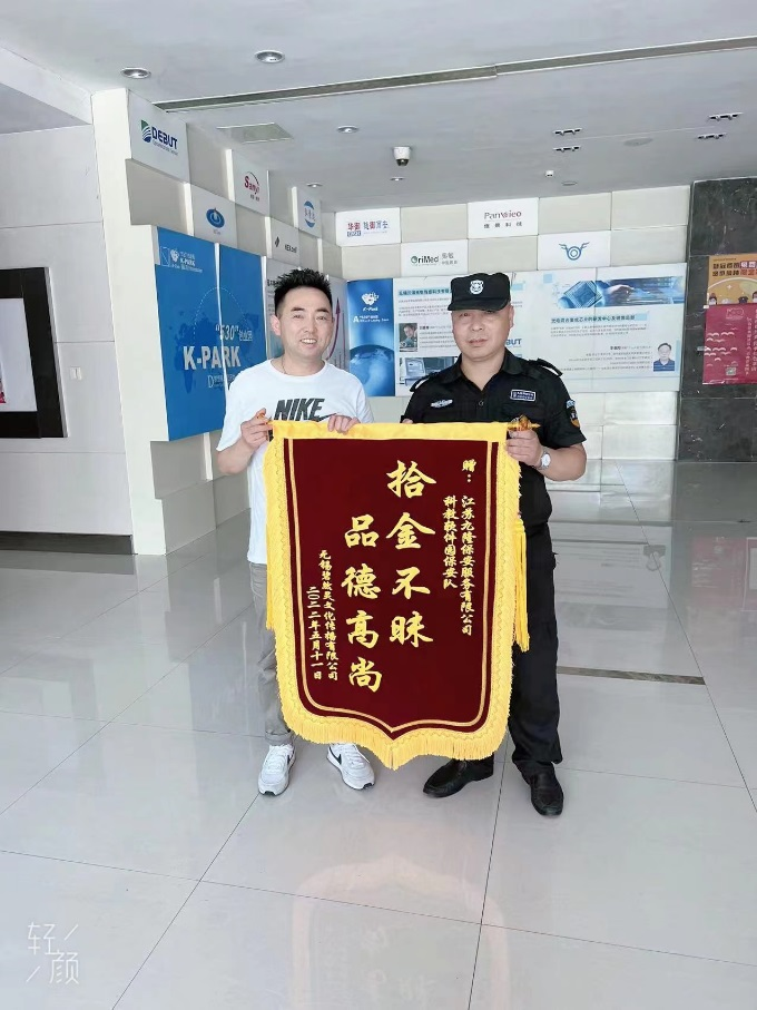 拾金不昧,看似举手之劳之事,却是中华民族的传统美德,保安队长胡兆军、保安员董建中的高尚品德为九隆保安公司良好保安形象树立了一面旗帜,公司领导号召全体保安员要向两位同志学习,切实把维护客户利益作为保安工作的出发点、落脚点和原动力,竭诚服务客户,以实际行动和良好业绩为公司发展助力添彩。