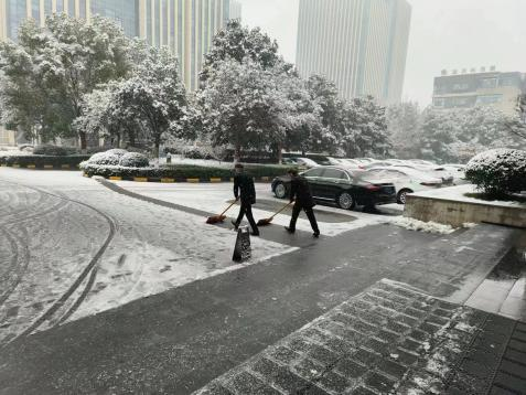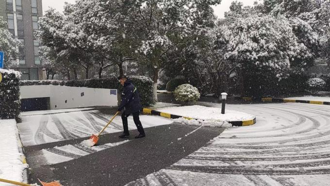 2023年12月18日,无锡迎来了一场大规模的降雪,给城市披上了一层银装素裹的美丽外衣。然而,这场美丽的雪景却给居民和公众的出行带来了不便。为了保证公众的出行安全,江苏九隆保安服务有限公司营运网点保安员为方庙社区、南湖家园、方庙睦邻中心农贸市场、周新文化艺术街区等周边道路清扫积雪。