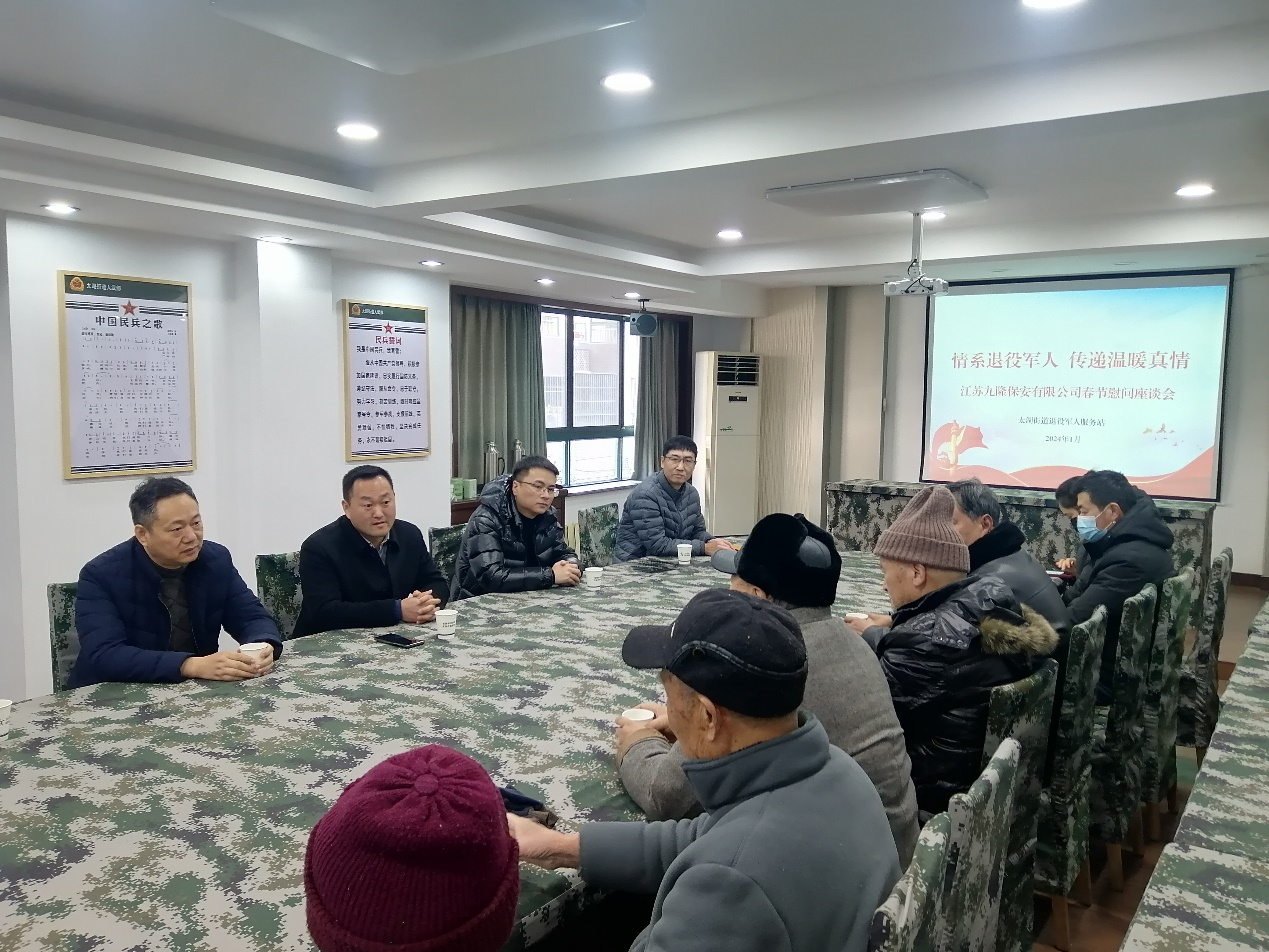 为进一步弘扬拥军优属优良传统,营造爱国拥军、尊敬军人的浓厚社会氛围,2024年1月24日,在新春佳节来临之际,江苏九隆保安服务有限公司党支部开展“慰问退伍老兵 弘扬拥军精神”主题党日活动,对困难退役老兵进行走访慰问,表达对退役军人的关心和关爱。